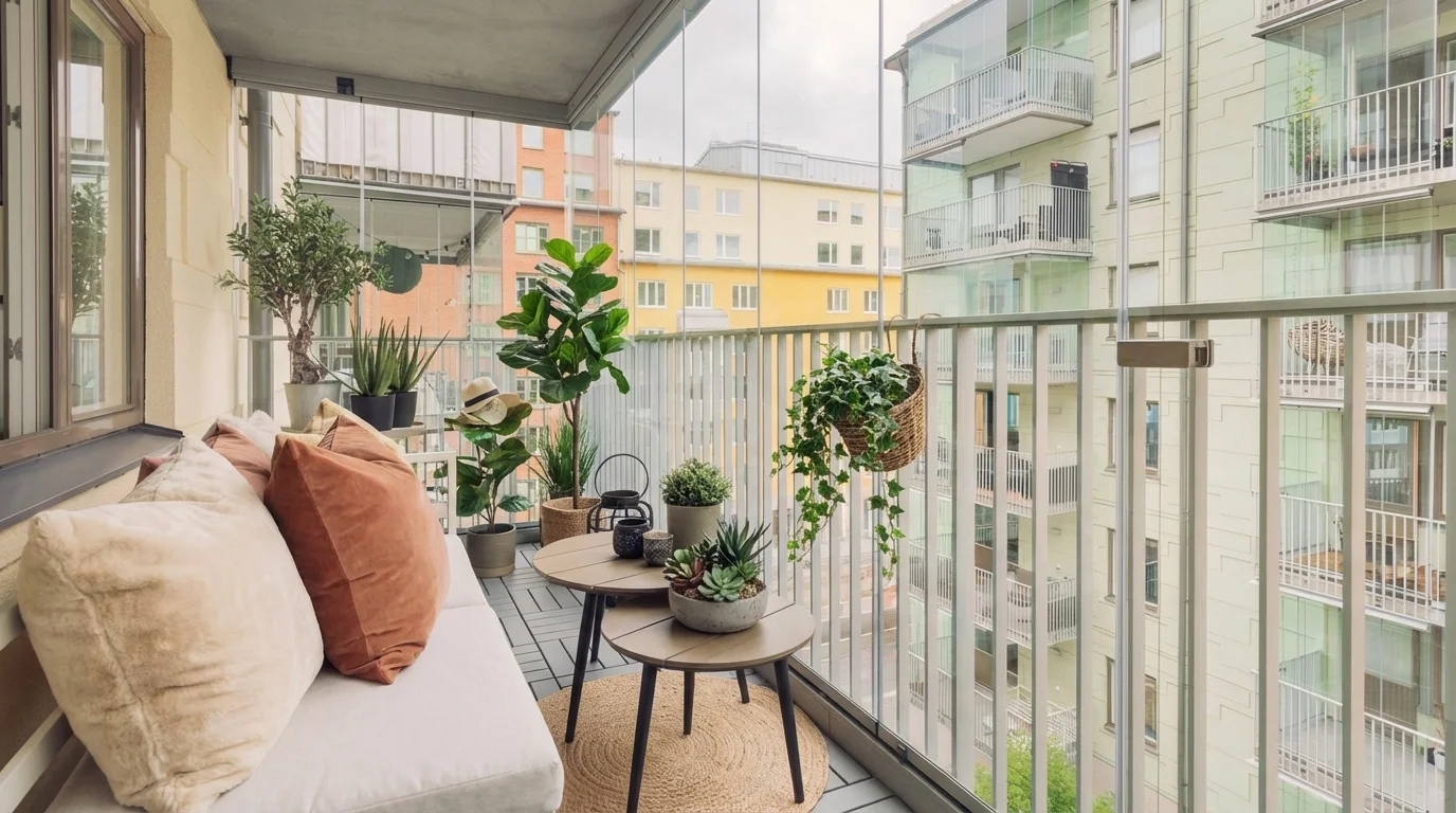 Στην Ελλάδα, οι εξωτερικοί χώροι είναι ουσιαστικά μια προέκταση του καθιστικού. Δείτε το πλάτος των μπαλκονιών. Ένα μπαλκόνι με βάθος μικρότερο από 1,50 μέτρο μπορεί να χωράει οριακά ένα τραπεζάκι, ενώ ένα πλάτος 2,00 μέτρων και άνω προσφέρει άνετο χώρο για τραπεζαρία εξωτερικού χώρου.