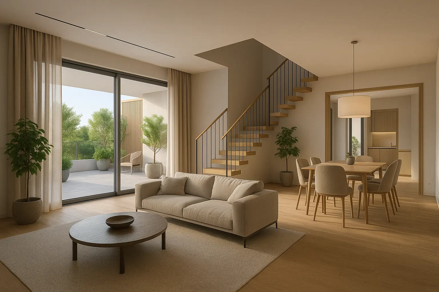 Η μεζονέτα διαθέτει μεγάλες βεράντες σε κάθε επίπεδο, με όμορφη θέα και ιδιωτικότητα. Η τοποθέτηση του ακινήτου επιτρέπει ανεμπόδιστη έκθεση στο φυσικό φως και δημιουργεί μια καθημερινή εμπειρία ελευθερίας. Οι εξωτερικοί χώροι είναι κατάλληλοι για υπαίθριο καθιστικό ή τραπεζαρία.