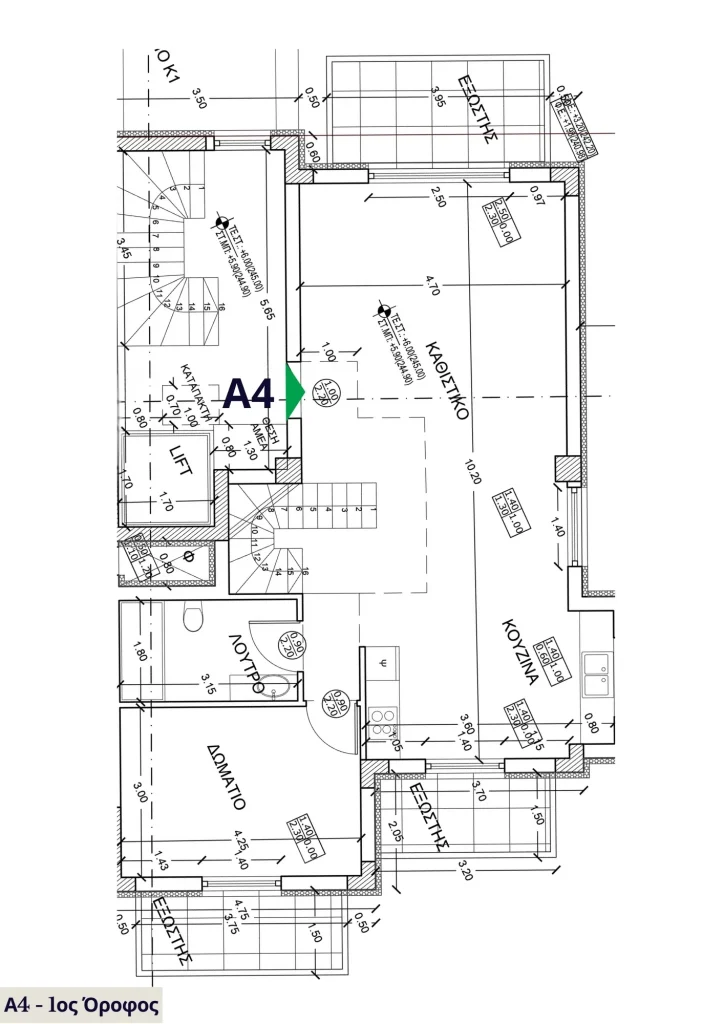Η μεζονέτα A4 είναι η πιο εντυπωσιακή κατοικία του Κτιρίου 1 — ένας χώρος που αποπνέει αισθητική ανωτερότητα και άνεση. Στον πρώτο όροφο φιλοξενείται ο κύριος χώρος διαβίωσης με ενιαίο καθιστικό, μοντέρνα κουζίνα, ένα μπάνιο και υπνοδωμάτιο. Η σοφίτα φιλοξενεί δύο επιπλέον υπνοδωμάτια και το δεύτερο μπάνιο, προσφέροντας απομόνωση και λειτουργικότητα.
