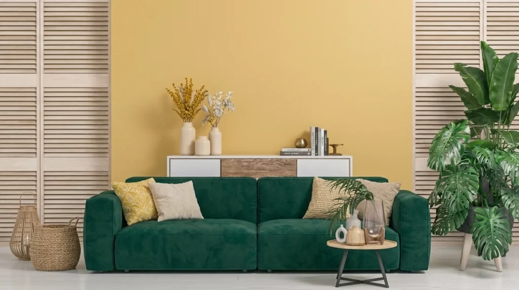2. Τεχνητός φωτισμός: Το βράδυ, επιλέξτε λαμπτήρες θερμού φωτισμού (2700K – 3000K) για να τονίσετε τη ζεστασιά που αναδίδει η τερακότα και το βουτυρένιο κίτρινο. Αποφύγετε τον ψυχρό, λευκό φωτισμό (πάνω από 4000K), καθώς θα “παγώσει” τον χώρο και θα κάνει τις γήινες αποχρώσεις να φαίνονται μουντές και επίπεδες.